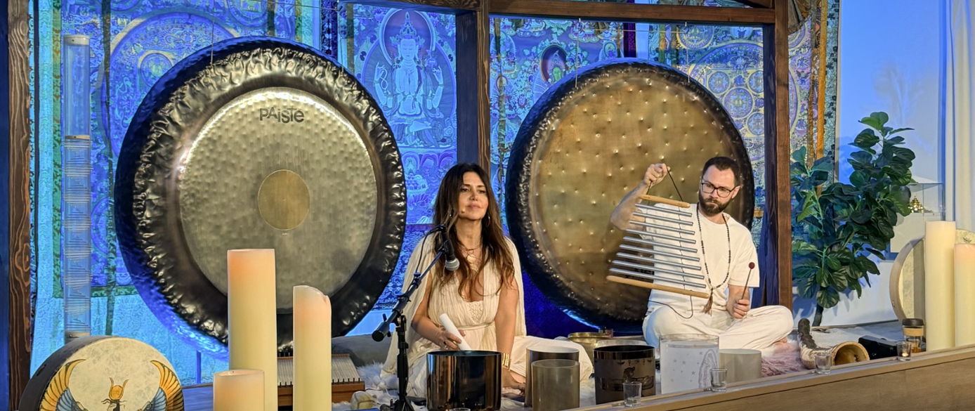 Shehera and Taylor create a layered soundscape using crystal alchemy bowls and resonant instruments that work in harmony with breath and stillness, helping the nervous system shift out of stress and into coherence.