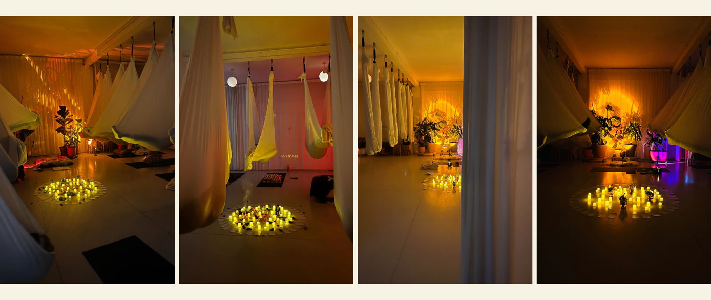 We finish off the evening with pure bliss relaxing in an aerial hammock. Being gently swayed while listening to carefully selected frequencies and binaural beats to connect you to your true essence to regulate and recharge.