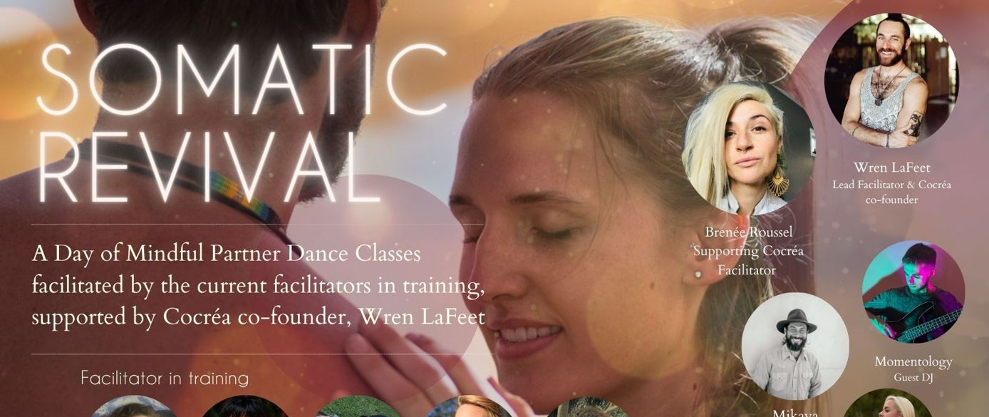 As we emerge from the chrysalis of frozen time and held breath, immerse and play with the current Cocréa cohort of facilitators-in-training as they celebrate the culmiation of the 2022 Facilitator Training. Supported by Cocréa co-founder, Wren LaFeet, and Cocréa facilitator, Brenée Roussel, spend the day in learning techniques and practices for deepening intimacy and freeing expression. Spend the night in somatic dialogue and sensuous revelry with community.