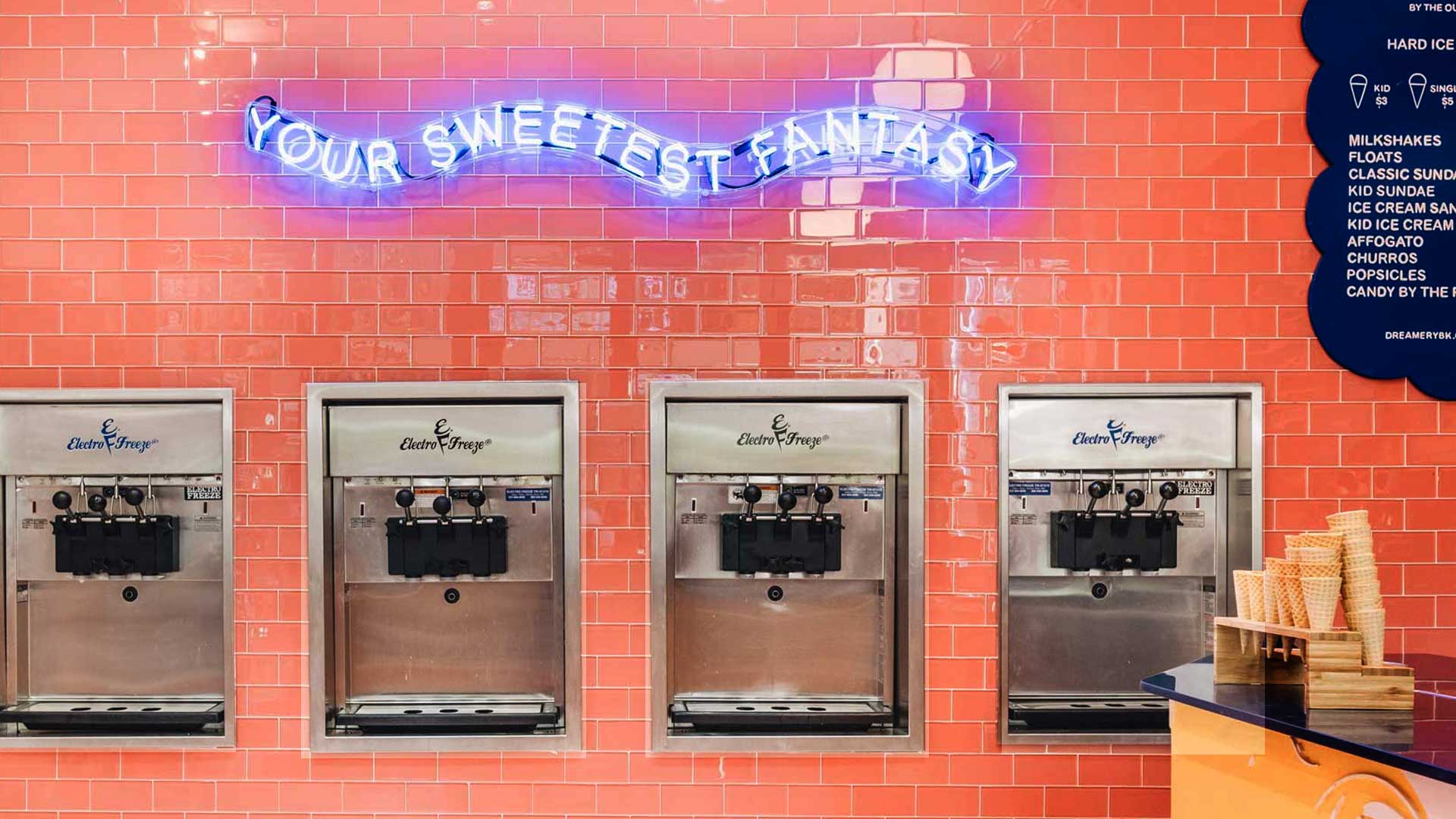 This adorable Clinton Hill/ Bed-Stuy vegan soft-serve bar is for “kids of all ages.” Complete with a DIY toppings bar and wall of candy, kids will definitely love it. But the seasonal and locally-sourced (when available) ingredients make this a very grown-up ice cream shop.